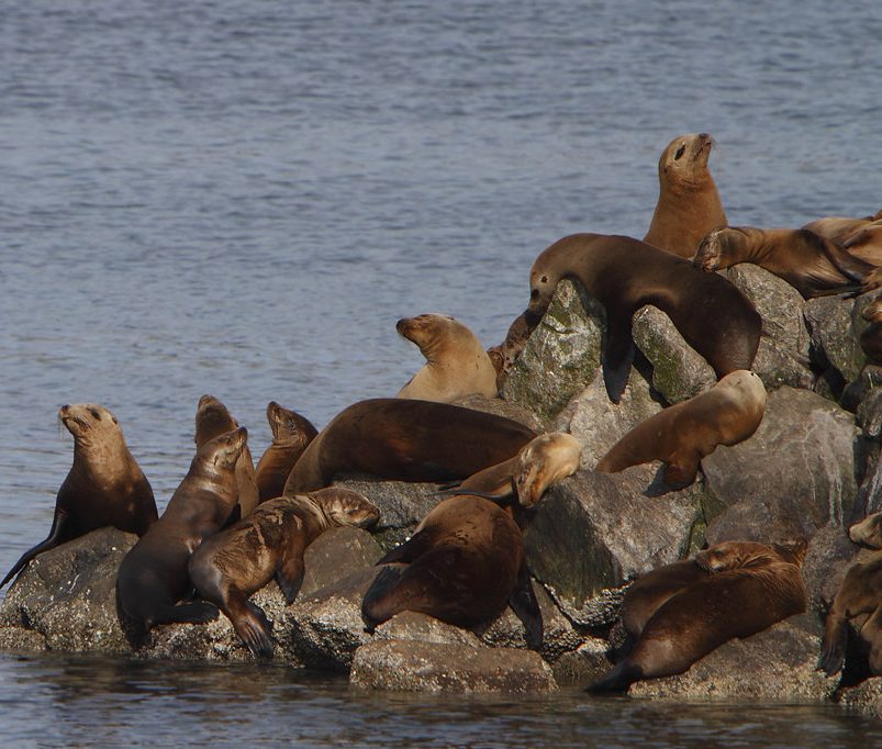 In the spring Sea Lions frequent the local waters looking for a meal of herring which spawn in the local waters in early February and March.  They in turn have to watch out as more and more the Transient Killer Whales are getting to know they can get an easy meal of Sea Lions for dinner in the local waters.